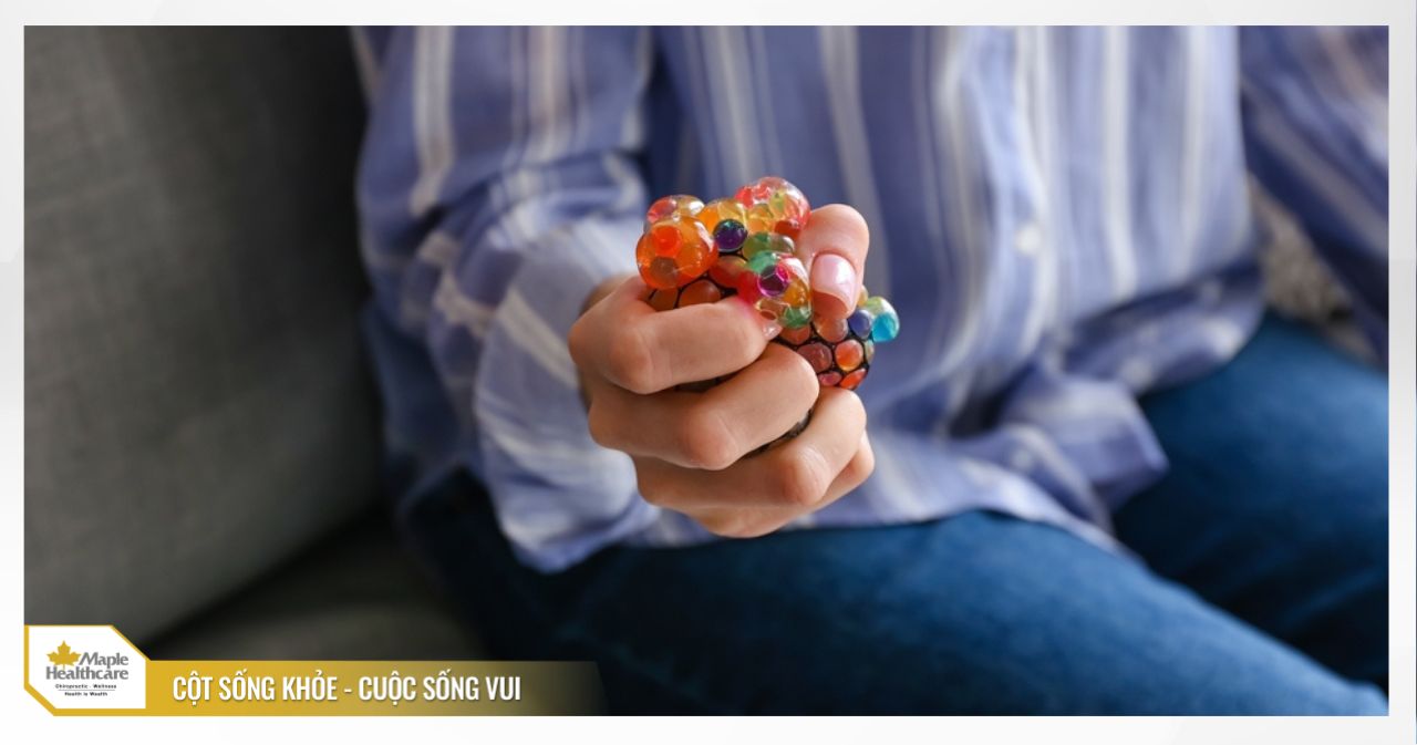 - Tư thế: Cầm một quả bóng xốp mềm hoặc bóng tennis trong lòng bàn tay.