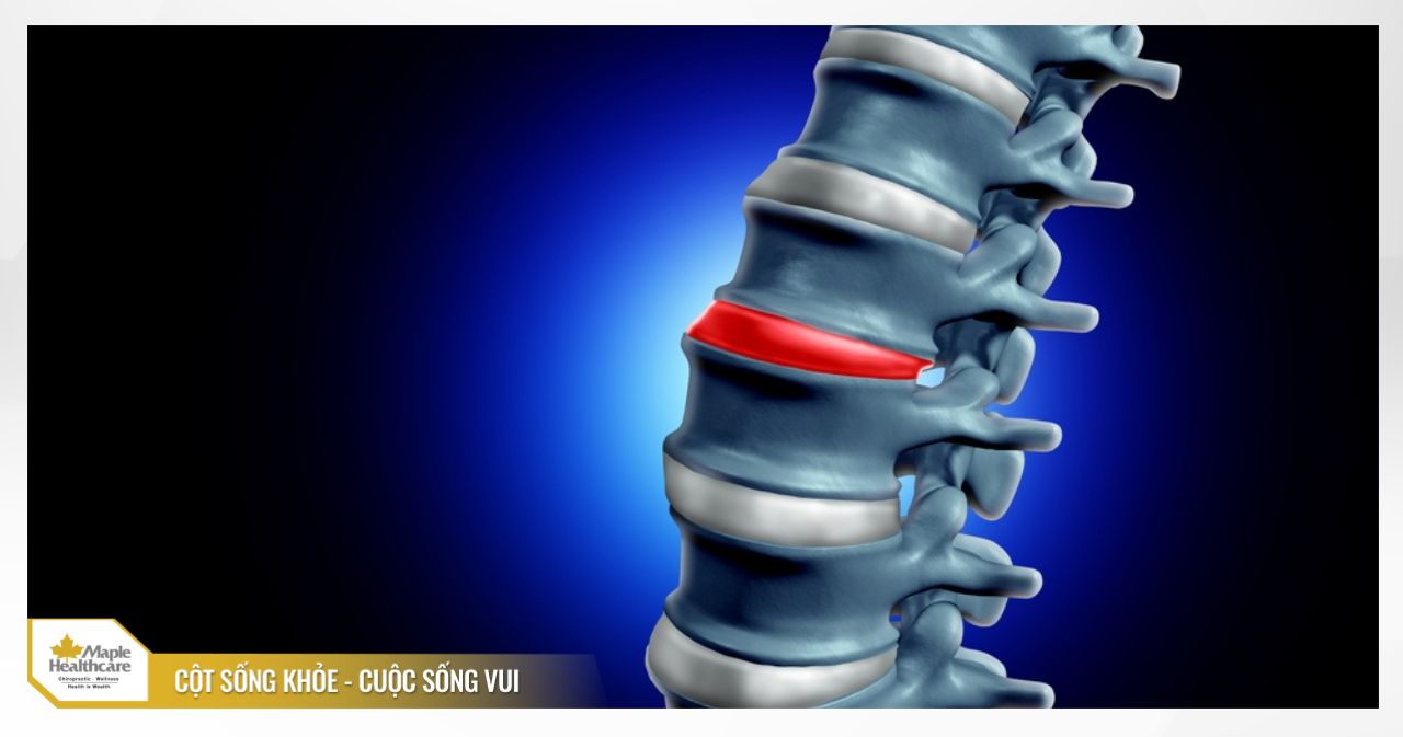 - Đĩa đệm mất nước: Đây thường là khởi đầu của quá trình. Đĩa đệm mất nước, giảm chiều cao, kém đàn hồi, từ đó khả năng hấp thụ lực bị suy giảm. Khoảng cách giữa hai đốt sống hẹp lại.